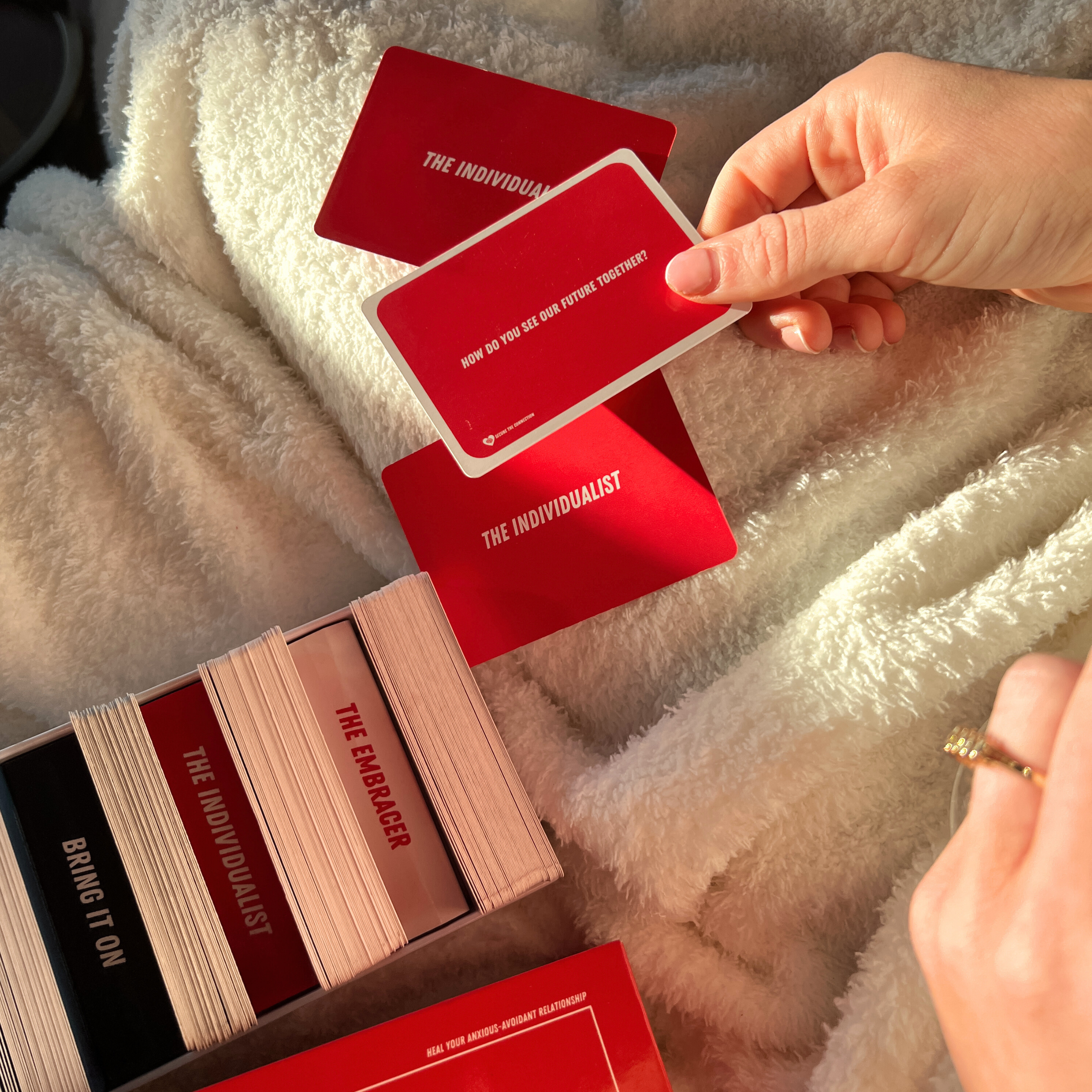 Secure the Connection is the first card game made to explore attachment styles and heal anxious-avoidant relationships. Crafted by relationship experts, it uses fun prompts to spark deep conversations and strengthen your connection like never before. Get ready to heal together!